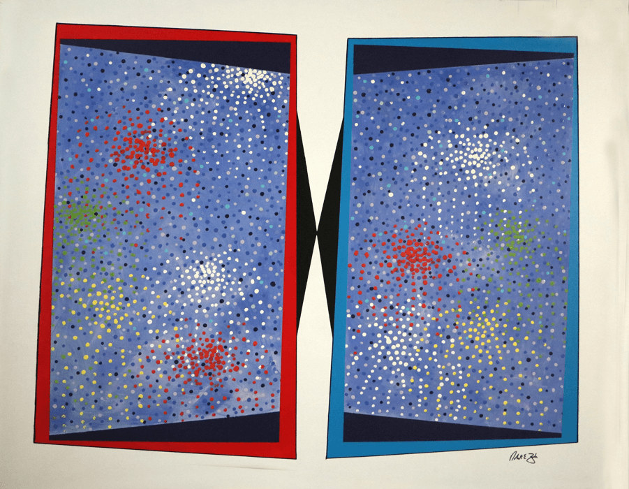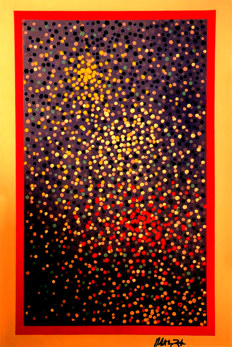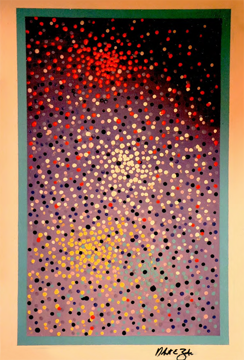 "Deep Space" satisfies the minimalist demand that the subject is paint on a flat surface. In this case, the color is black. However, consider another possibility. Consider that you are on the command deck of the star ship Enterprise. The window before you on the command deck presents deep space, a thousand light years of nothing. There is the enigma: a painting that presents a flat surface where the subject is black color, and at the same time it is a medium suggesting infinite space.