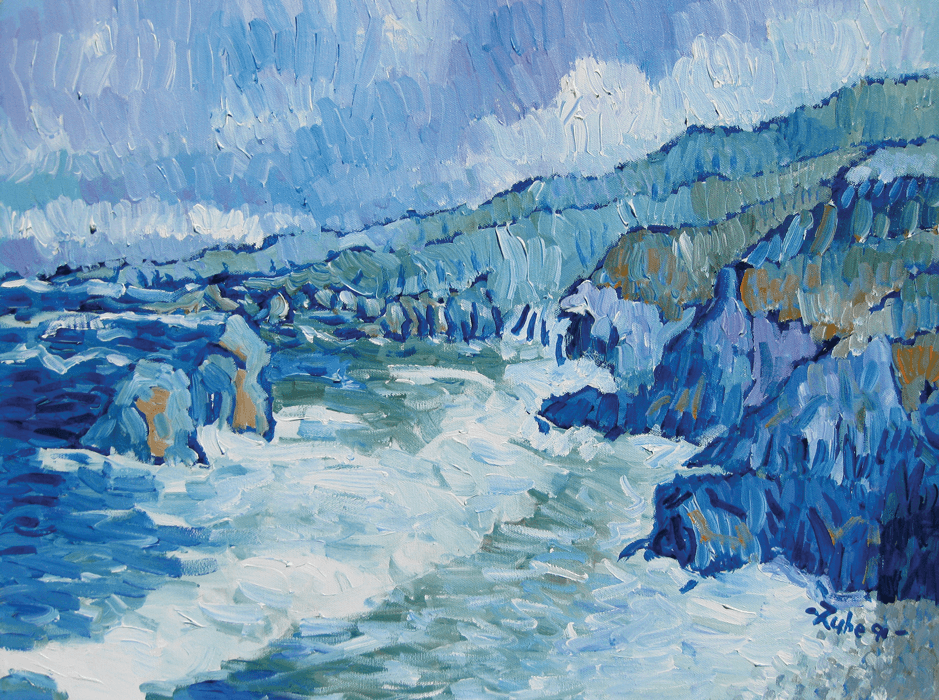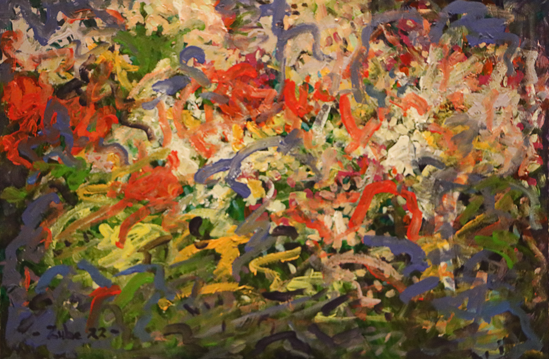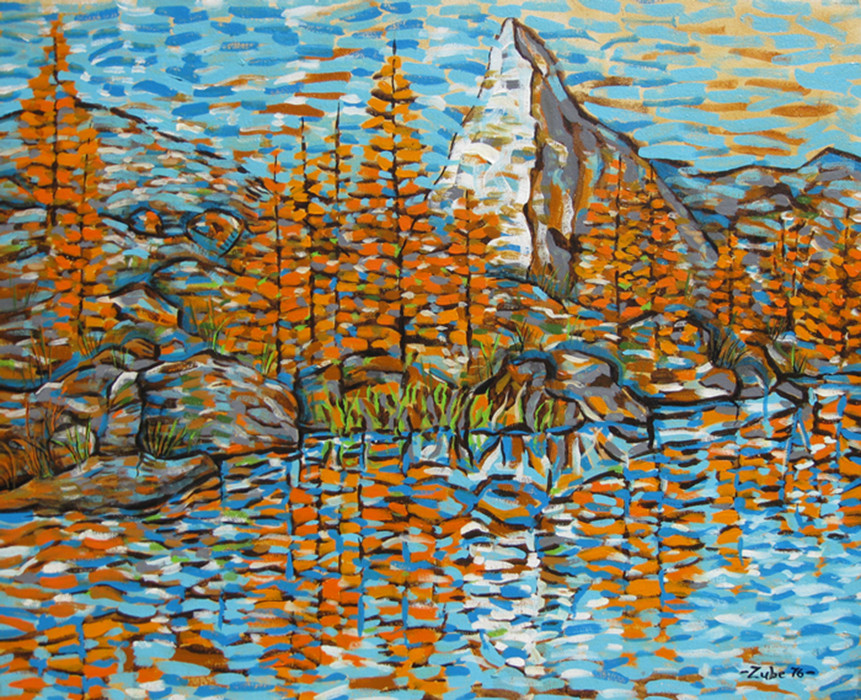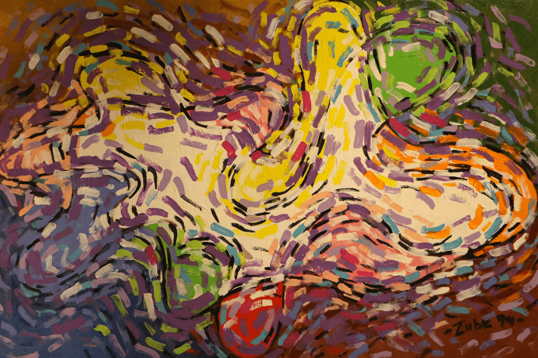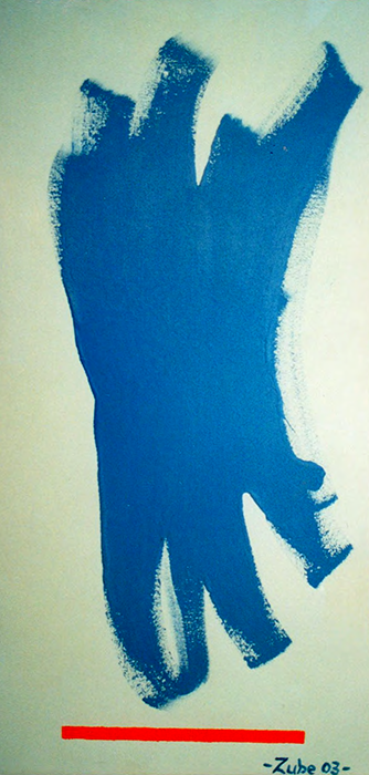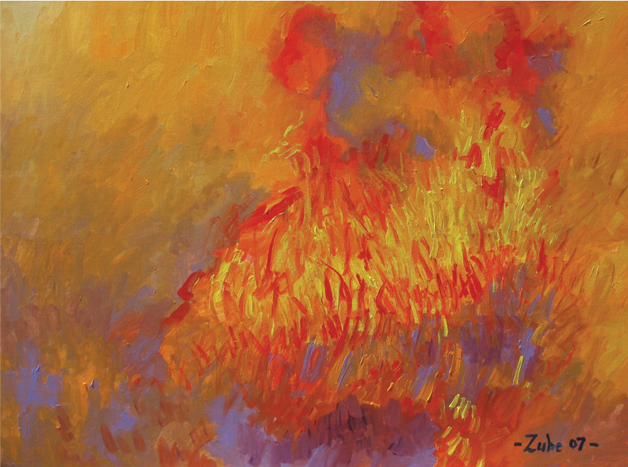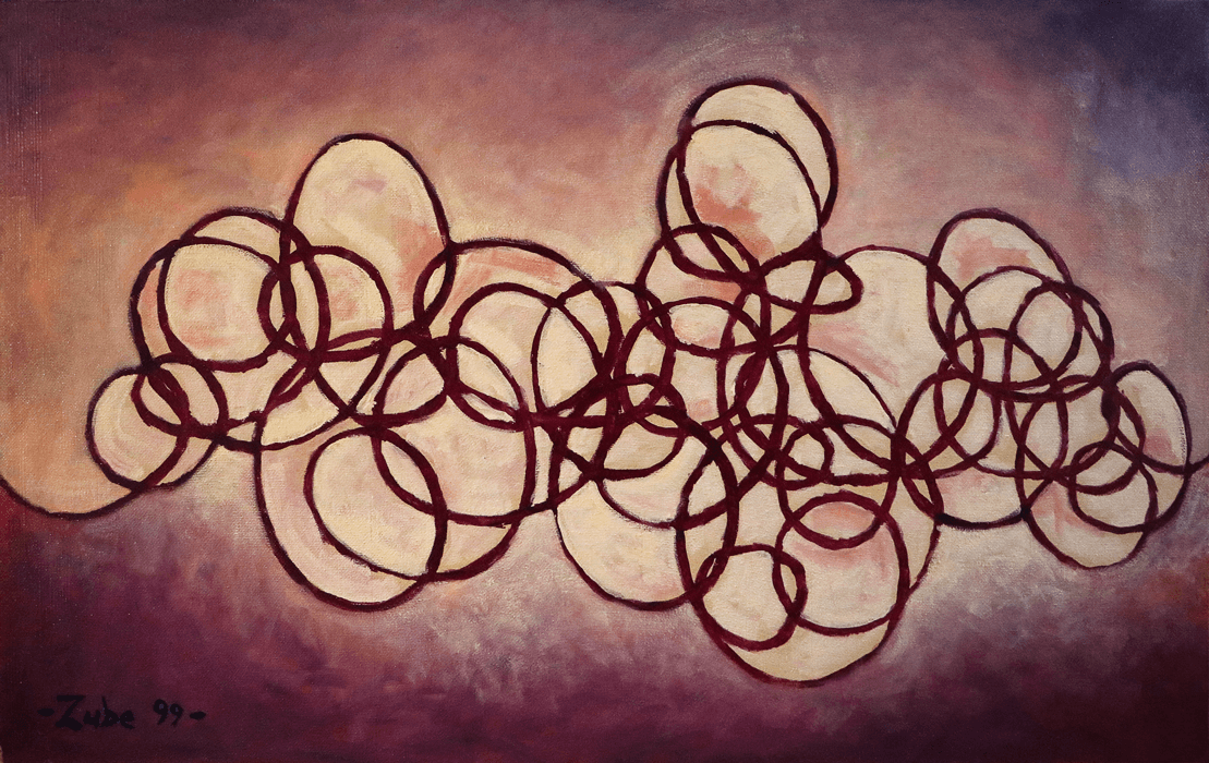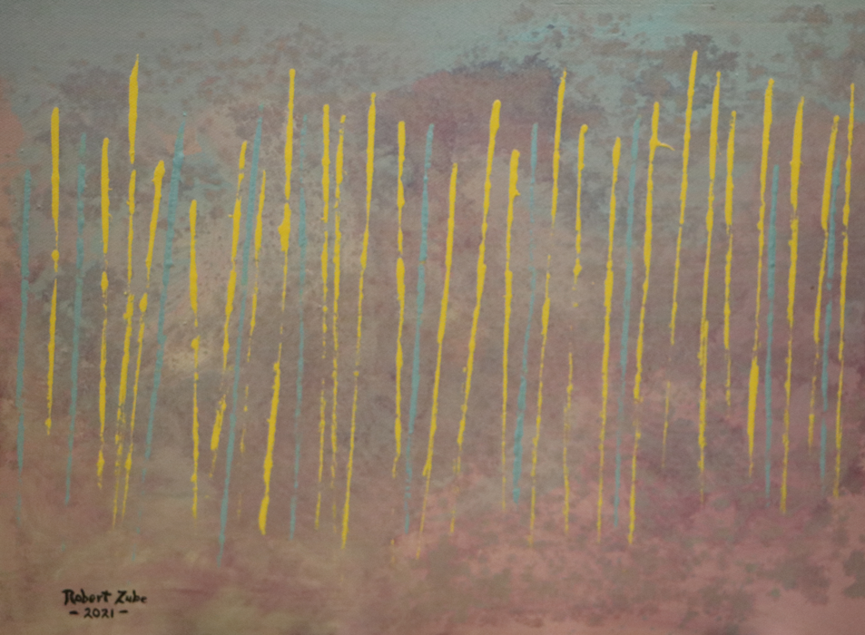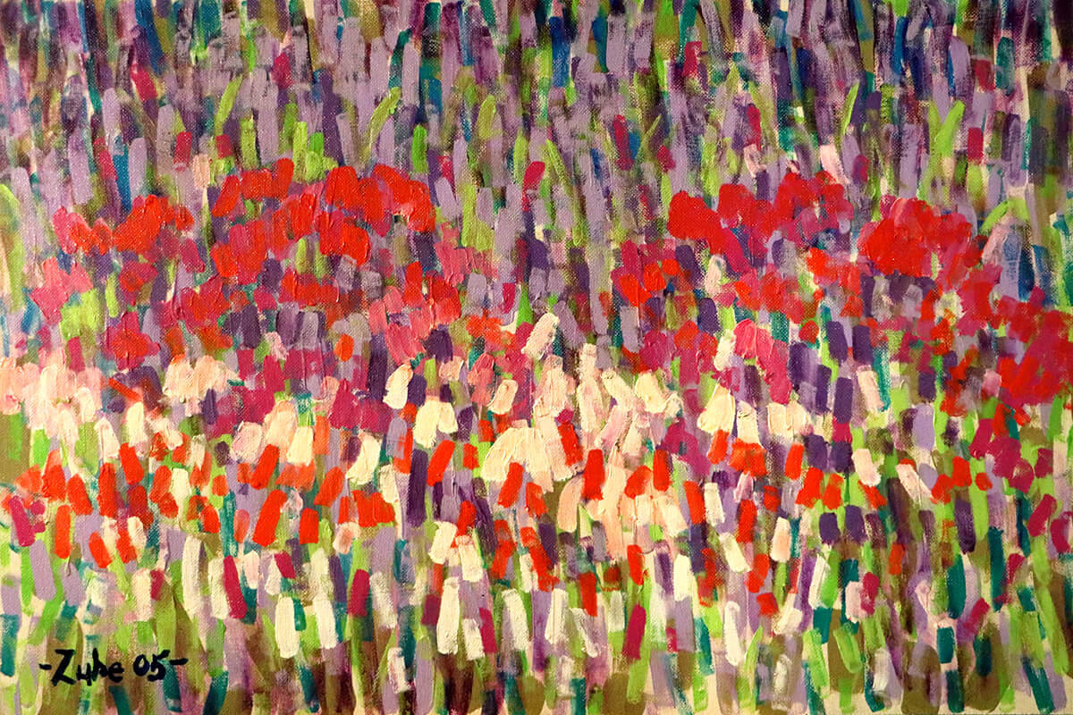 The methodology is not revealed by the linear fragmented lines of the composition. The secret lies in the spaces between the lines. It is here where the distinction between positive and negative space is severed, allowing color to flow freely back and forth between all areas of the painting.