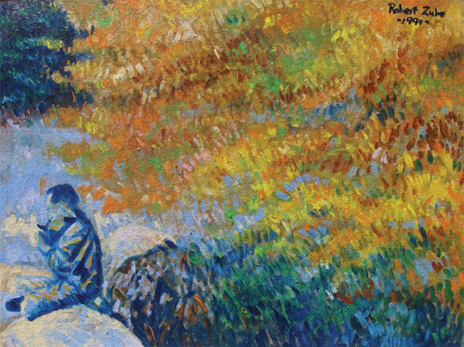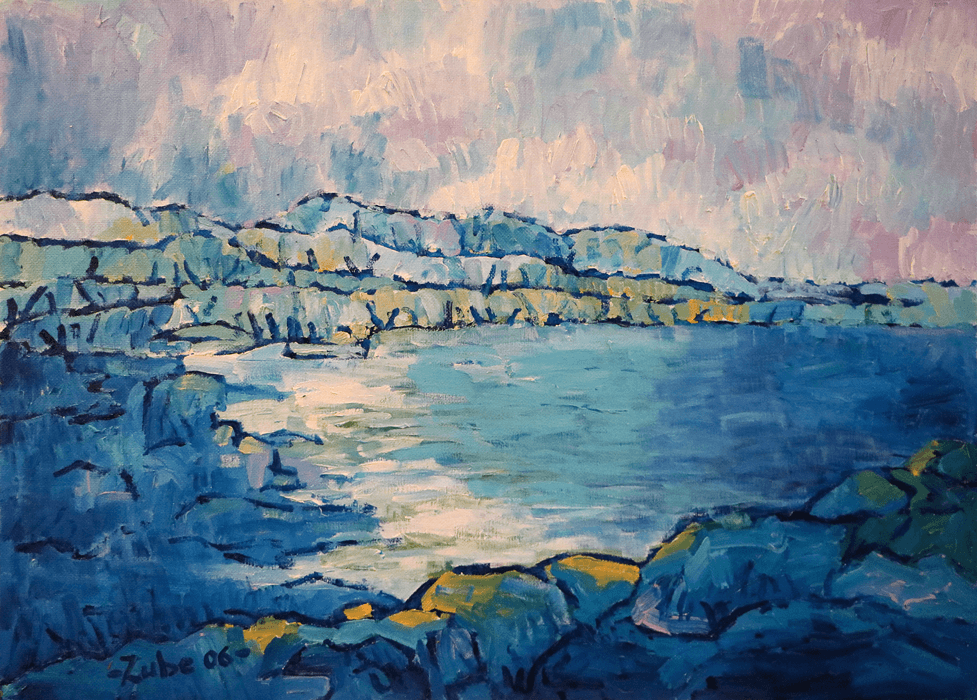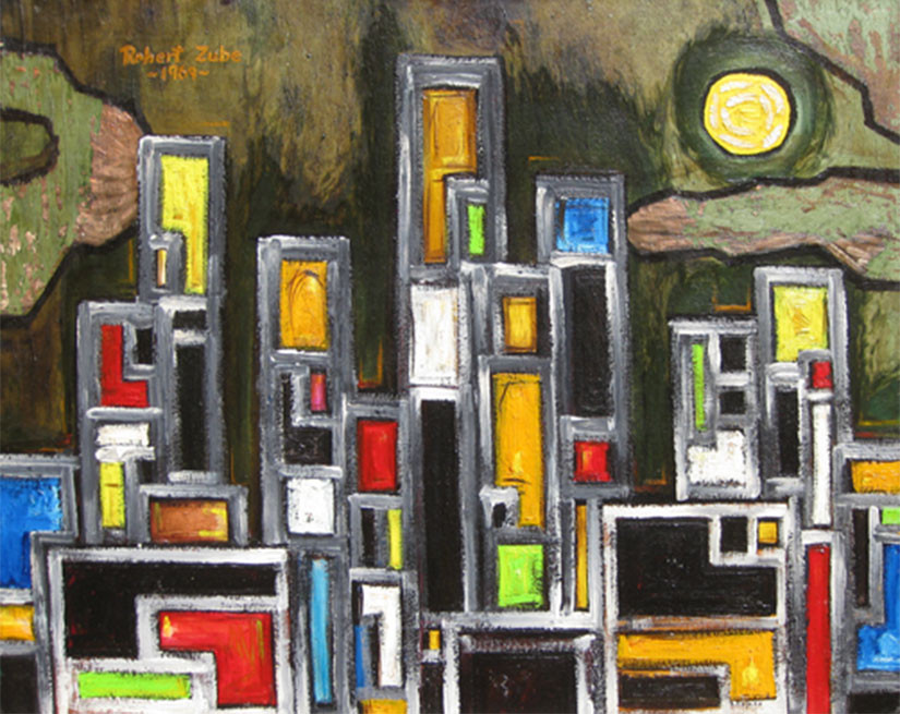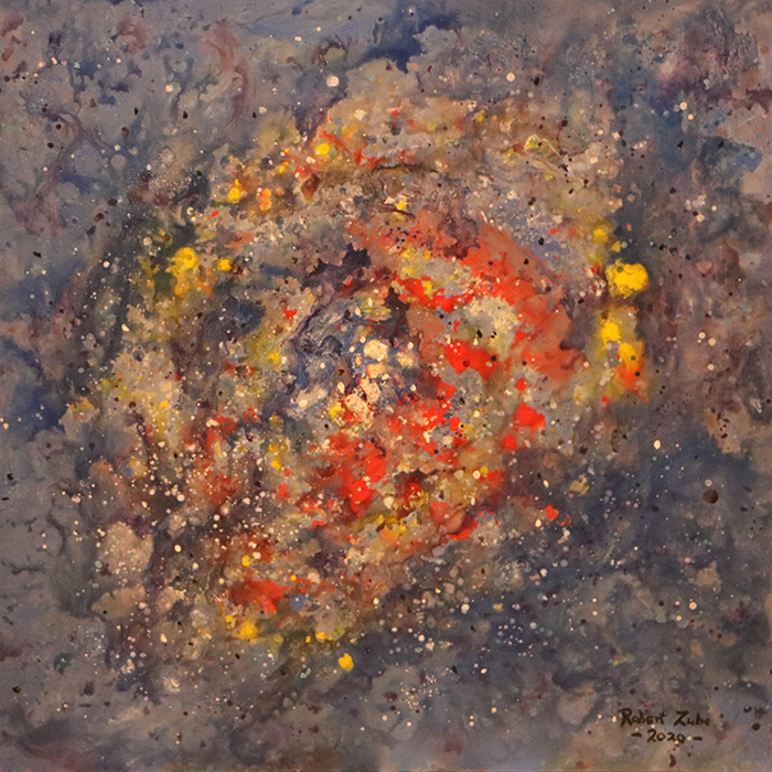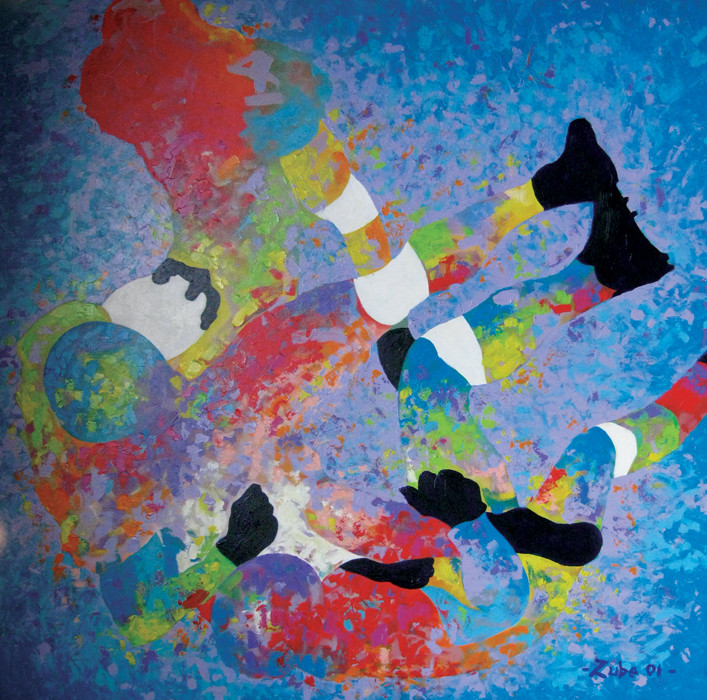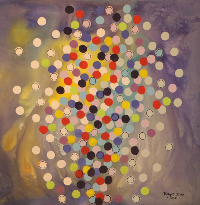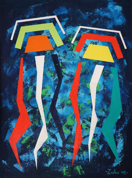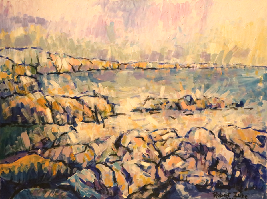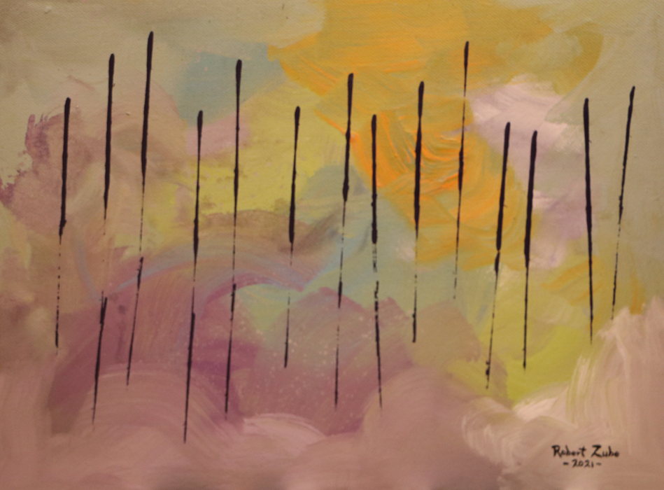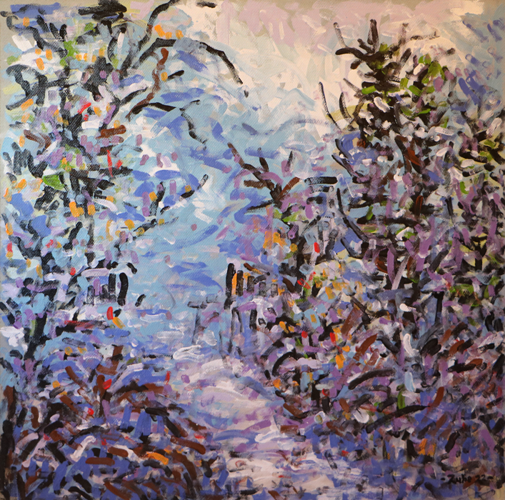 The methodology is not revealed by the linear fragmented lines of the composition. The secret lies in the spaces between the lines. It is here where the distinction between positive and negative space is severed, allowing color to flow freely back and forth between all areas of the painting.
