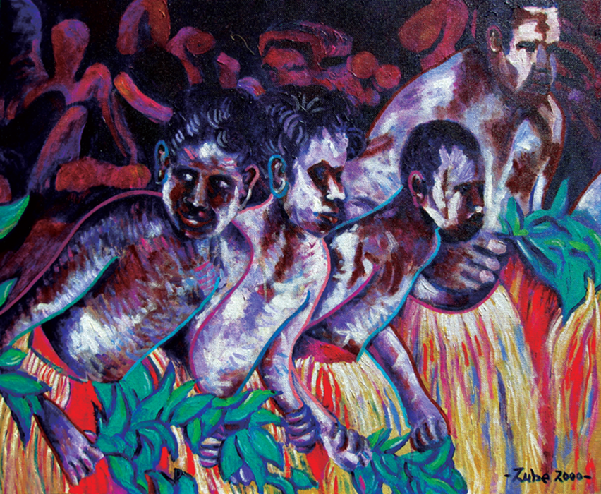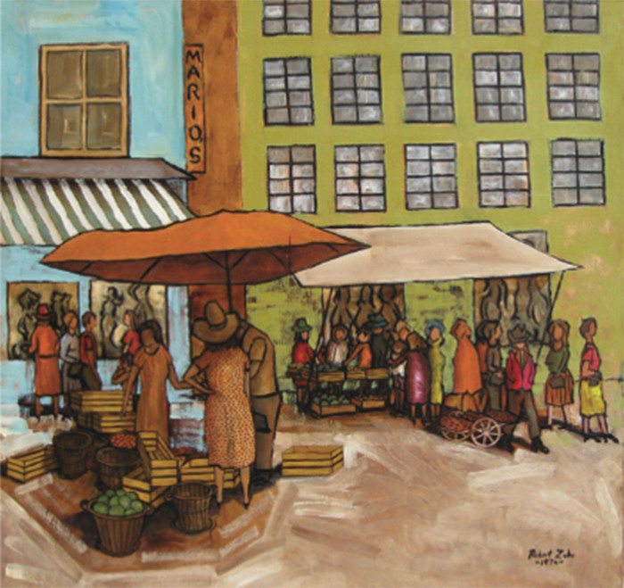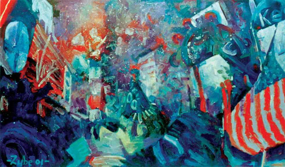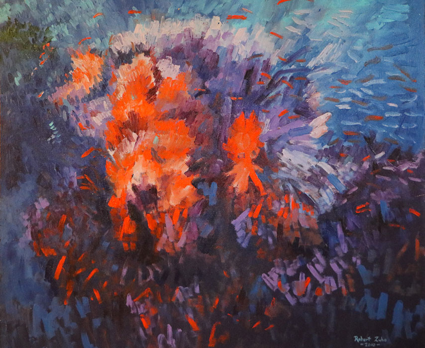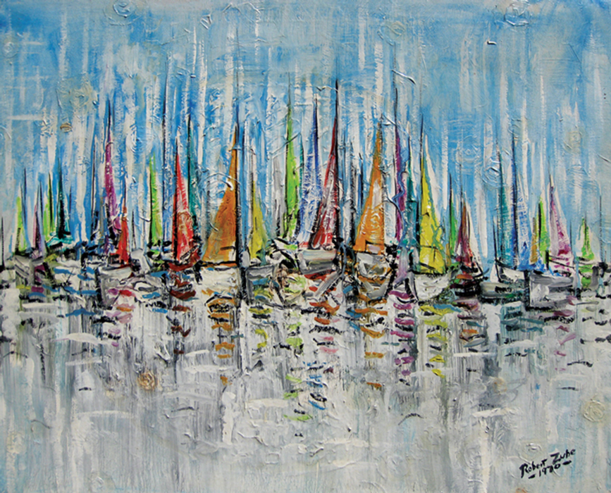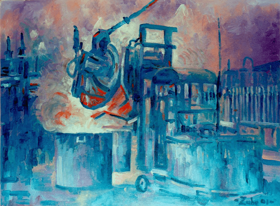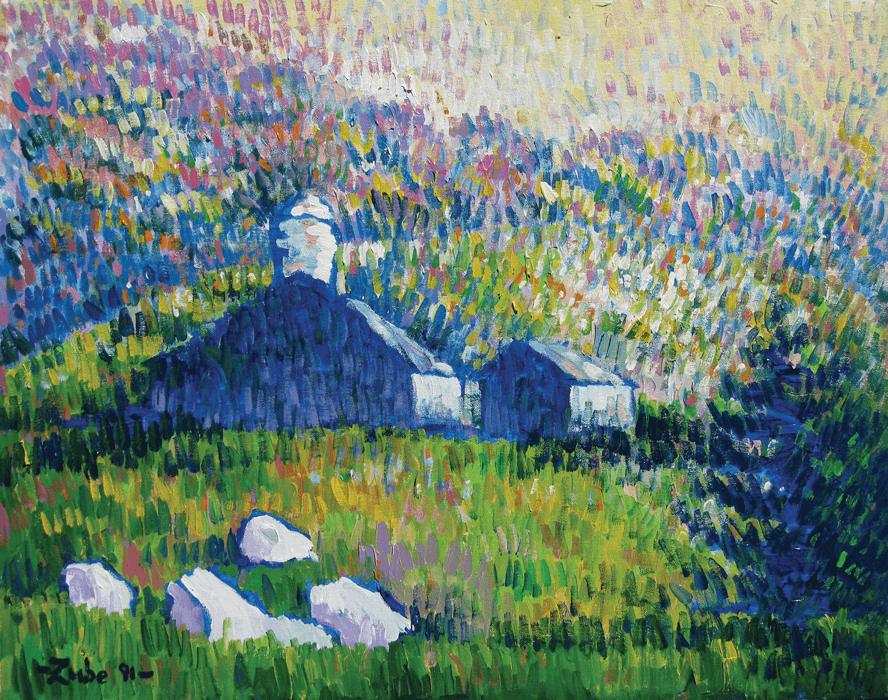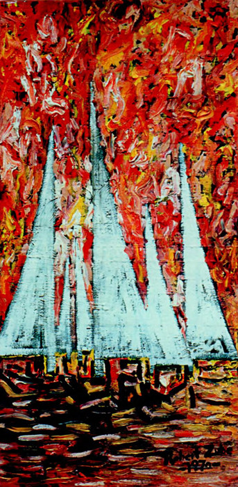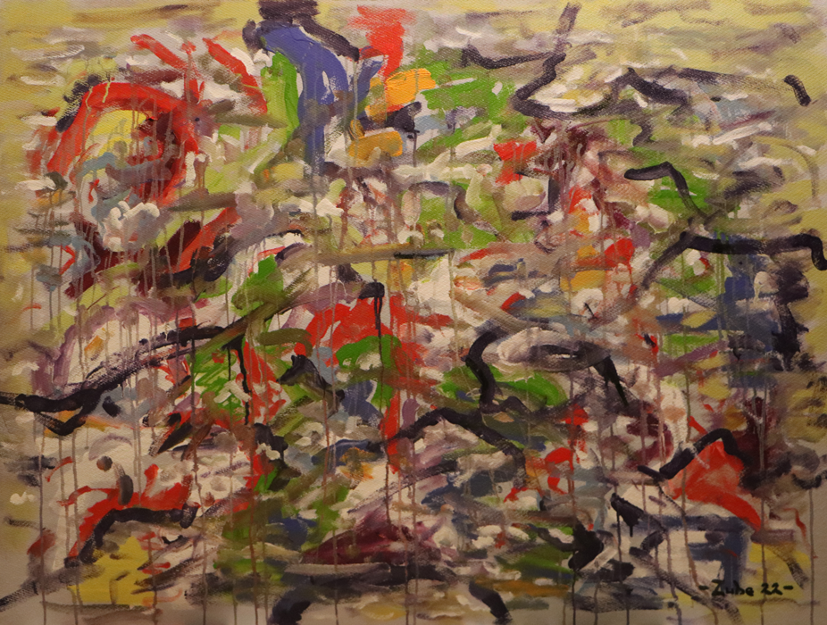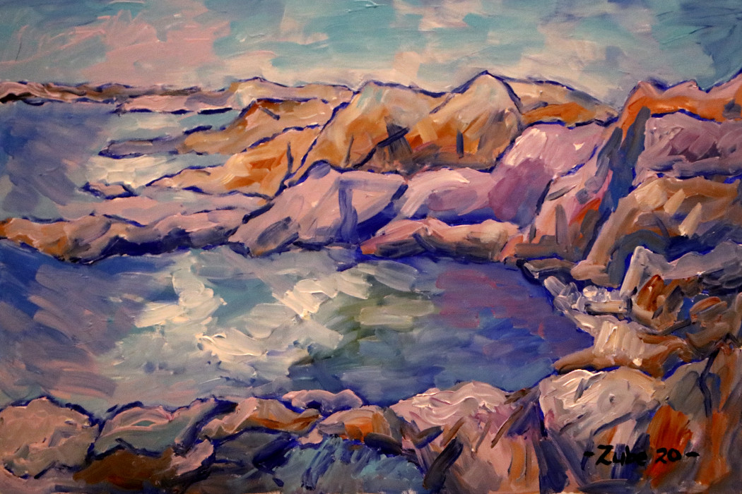 The methodology is not revealed by the linear fragmented lines of the composition. The secret lies in the spaces between the lines. It is here where the distinction between positive and negative space is severed, allowing color to flow freely back and forth between all areas of the painting.
