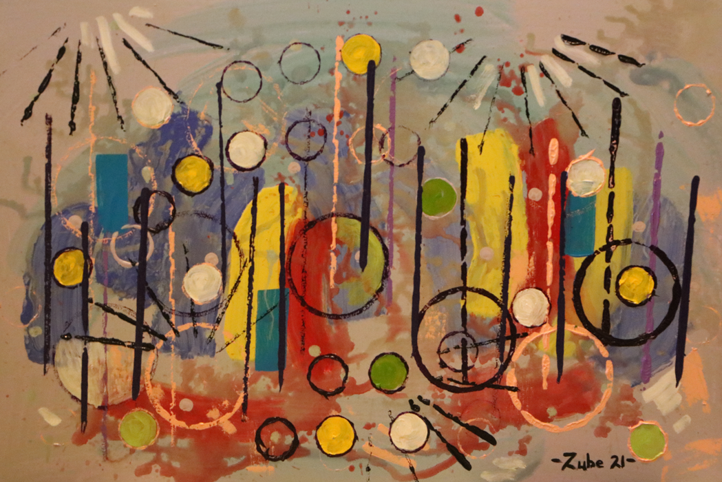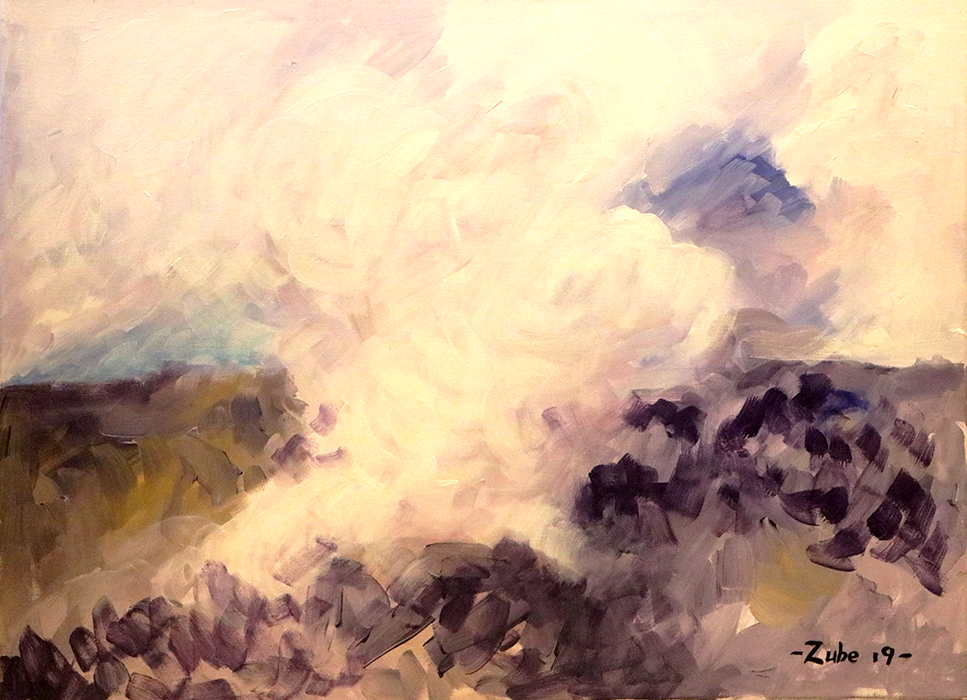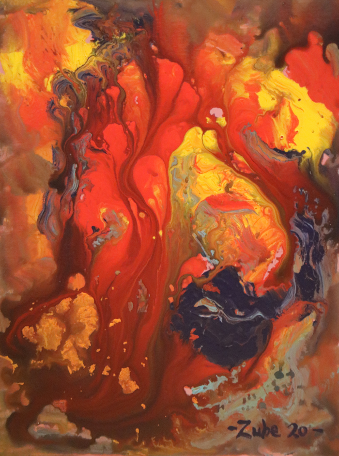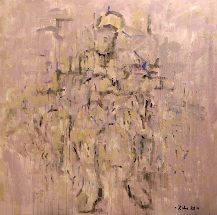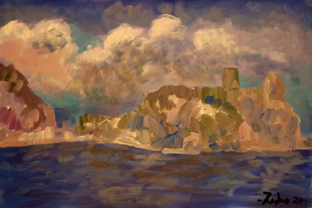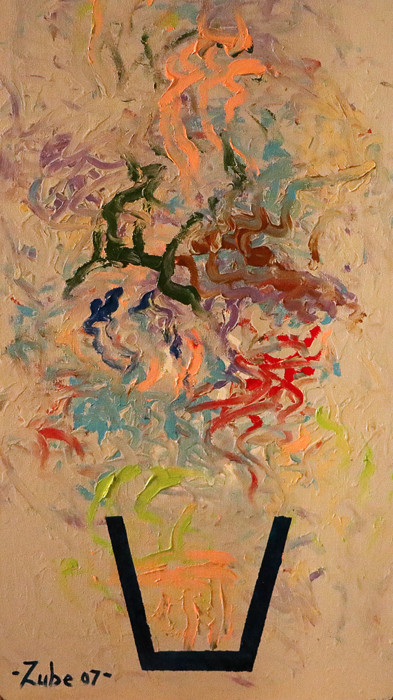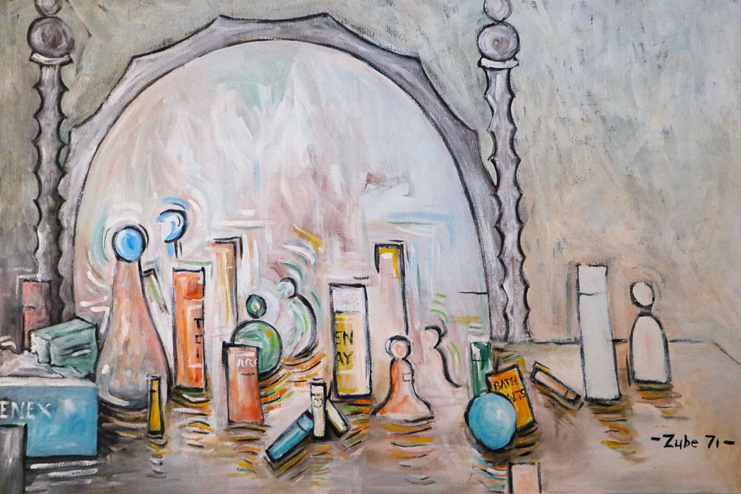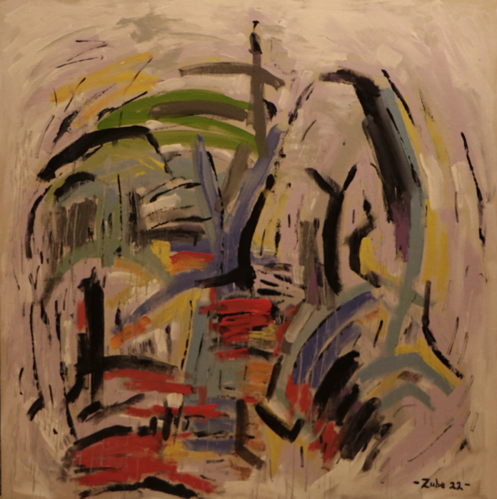 In order to create this painting in the style of the middle Cubist period, one must first compose the subject and then decompose it by erasing half of the sketch in alternating sections. It is in the decomposing that the magic occurs. A new structure is created, and it can then be embellished or moved and repeated.