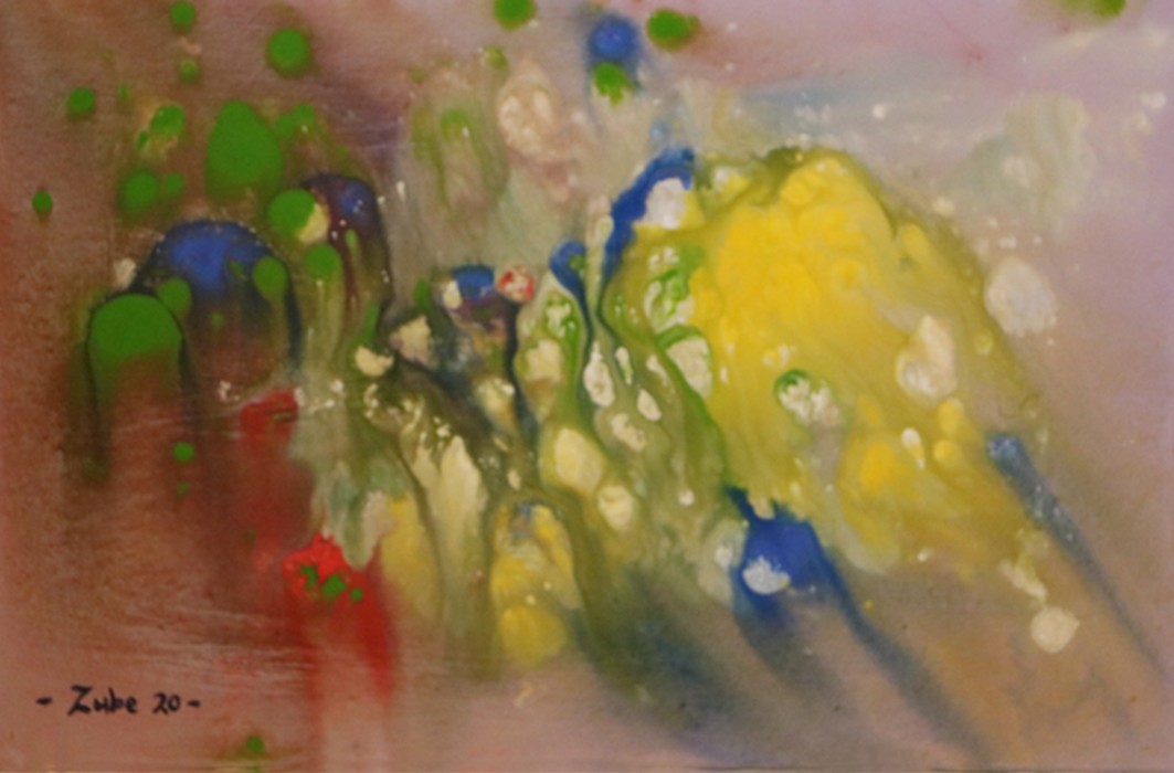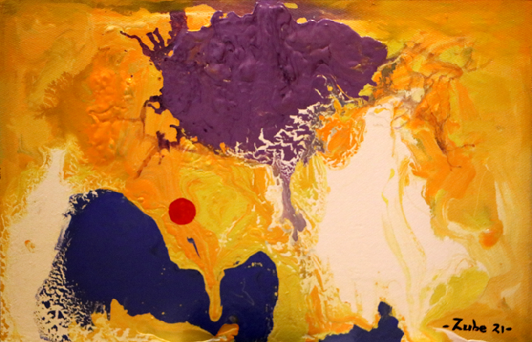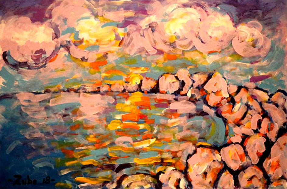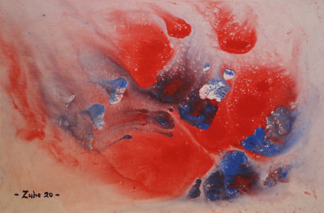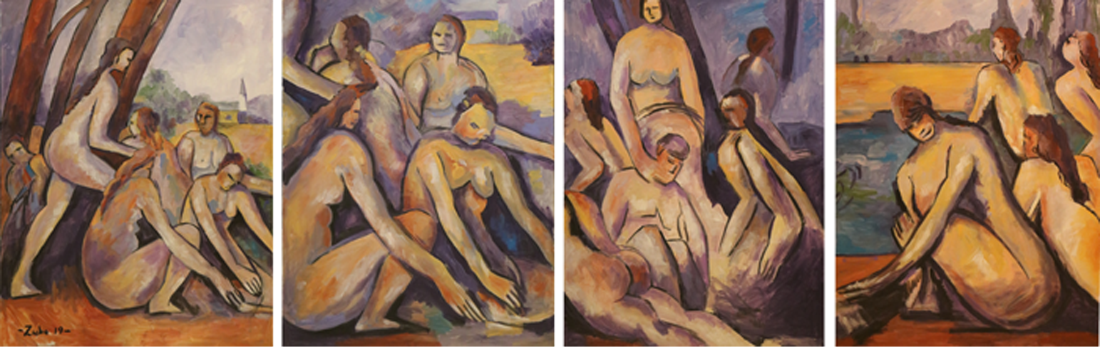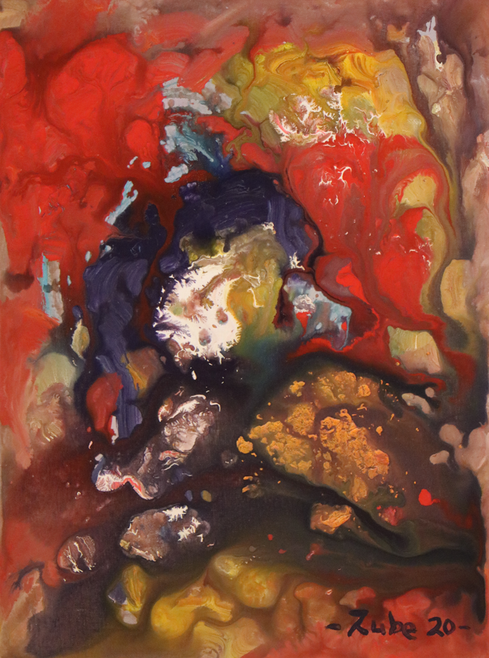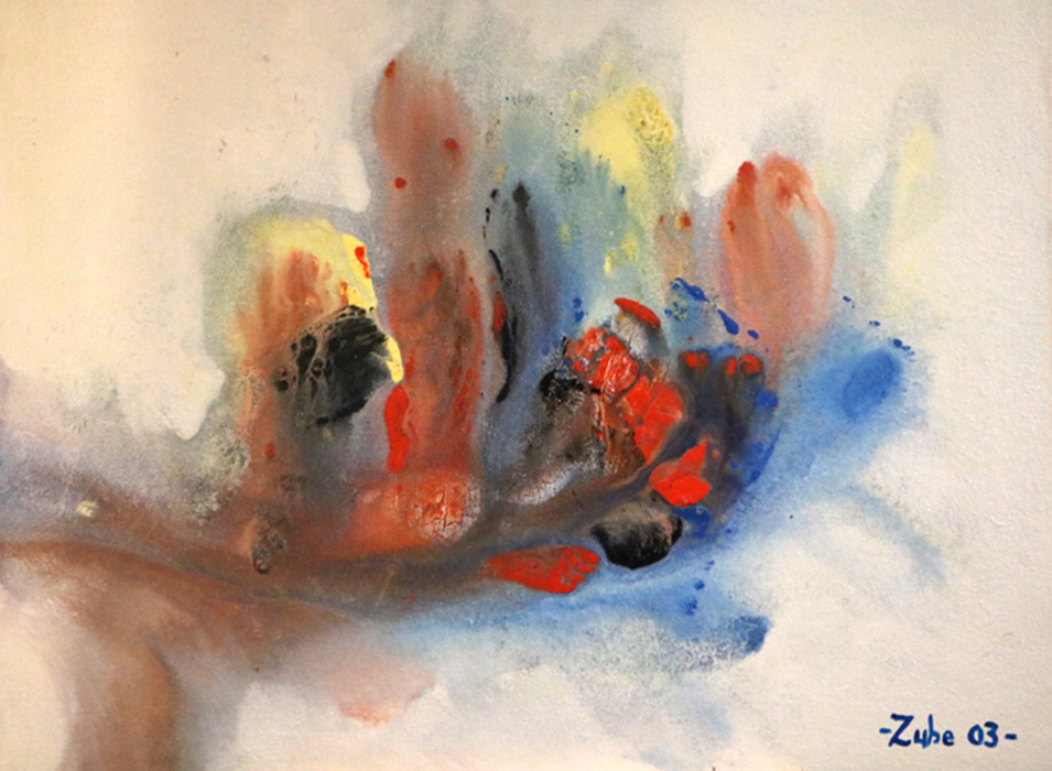 In order to create this painting in the style of the middle Cubist period, one must first compose the subject and then decompose it by erasing half of the sketch in alternating sections. It is in the decomposing that the magic occurs. A new structure is created, and it can then be embellished or moved and repeated.