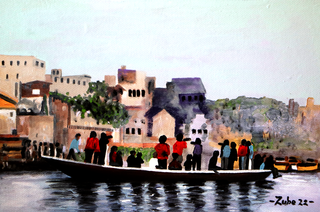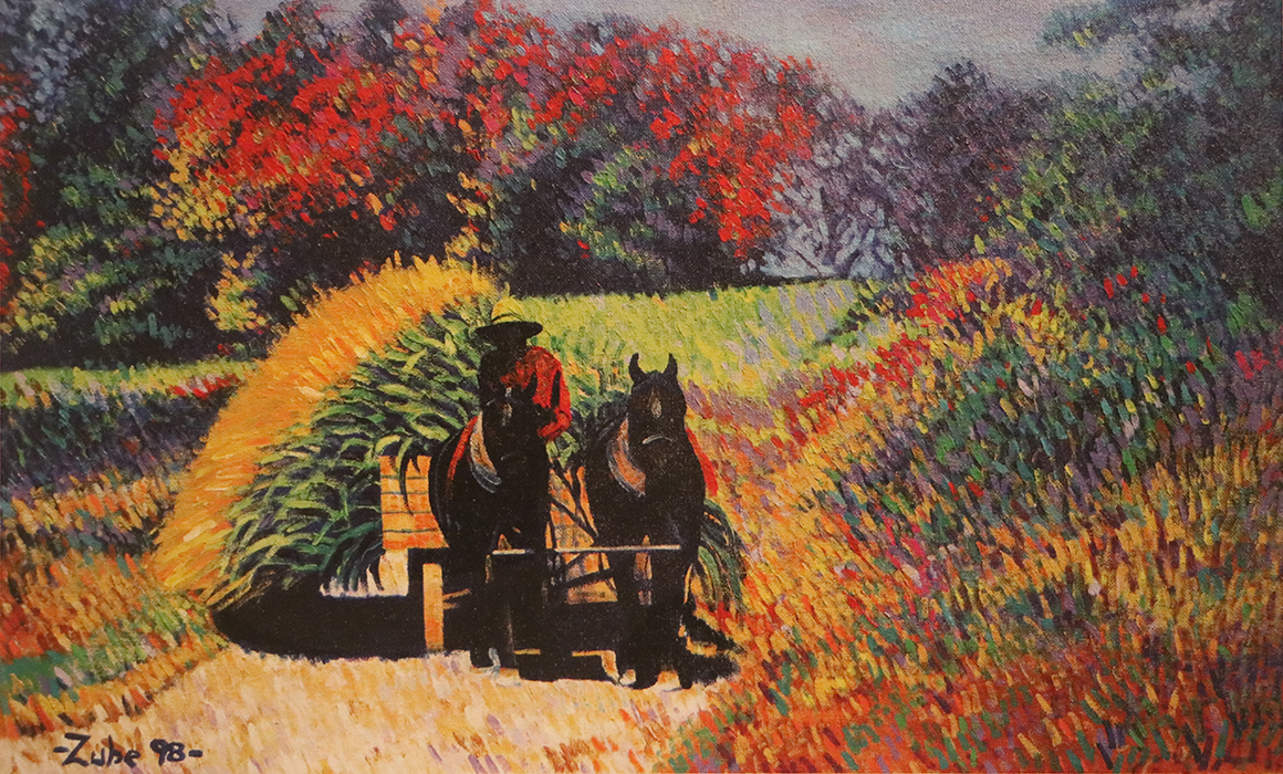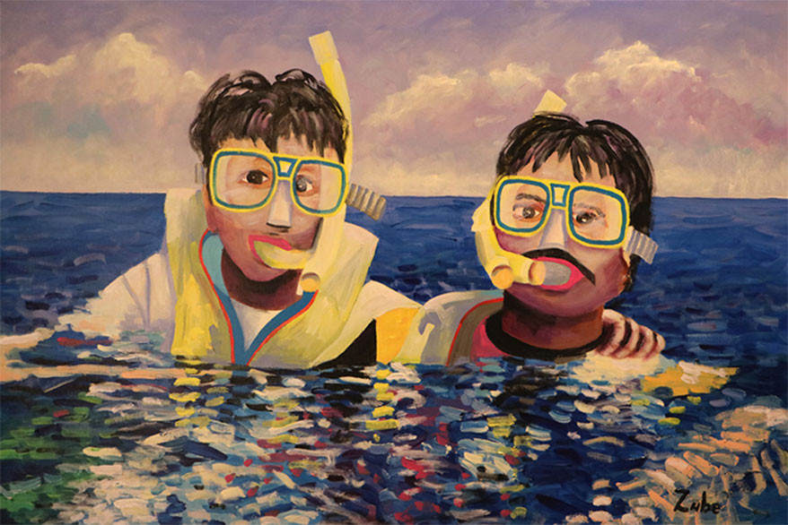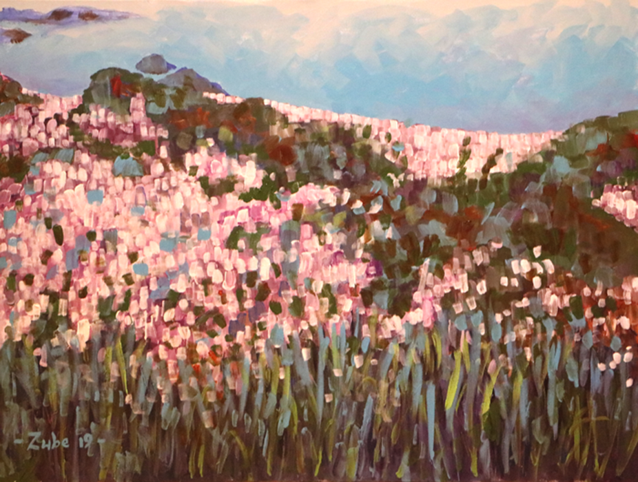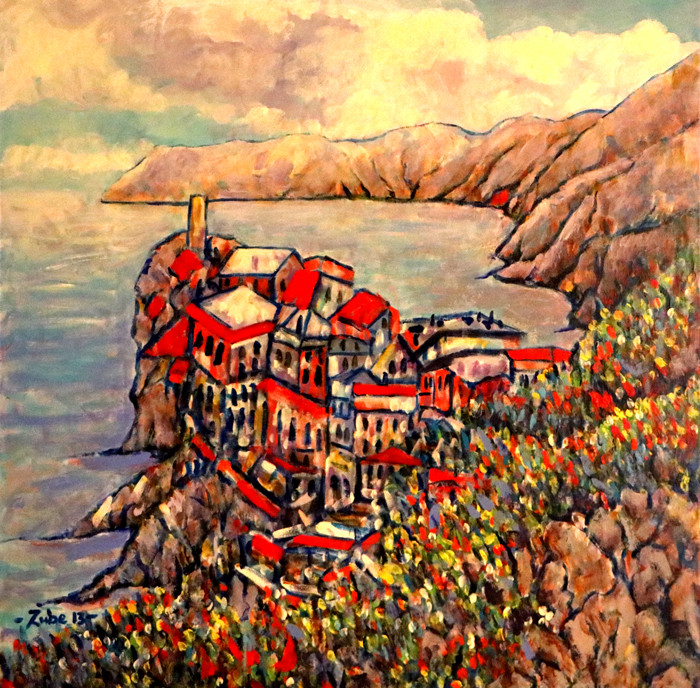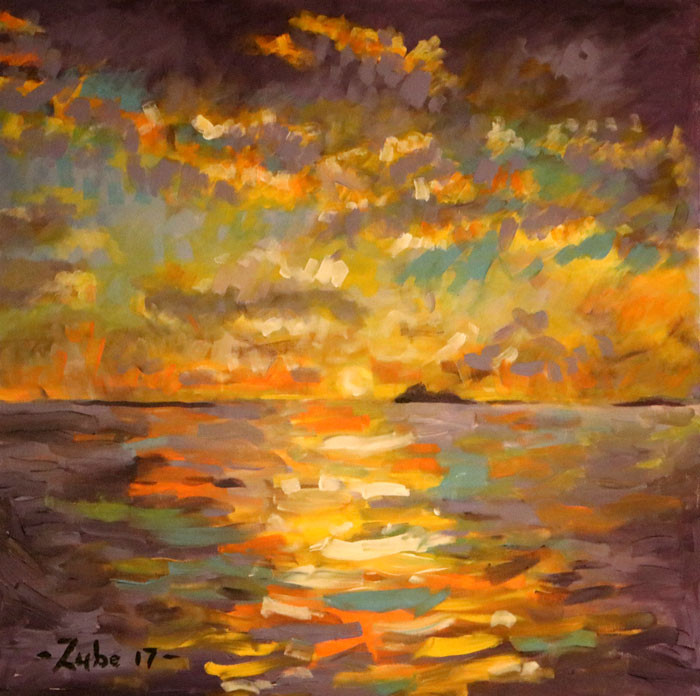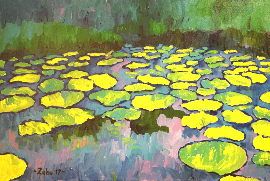 In order to create this painting in the style of the middle Cubist period, one must first compose the subject and then decompose it by erasing half of the sketch in alternating sections. It is in the decomposing that the magic occurs. A new structure is created, and it can then be embellished or moved and repeated.