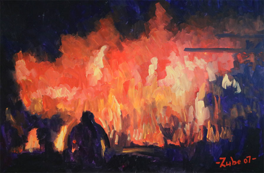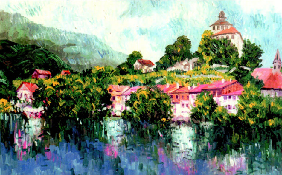 I was in a cafe in Berlin one night in 1993. The building had not been destroyed by war. Therefore, the original old window glass remained in place. I recall looking through that old glass to see what was going on out in the street, and I was immediately struck by what I saw. There, distorted in that old glass, was a vision that looked exactly like a mature Van Gogh painting. It was all there: the distorted lines, intensified brilliant colors, what looked like heavy brush strokes everywhere, and broken circles surrounding each source of light. It was amazing. .